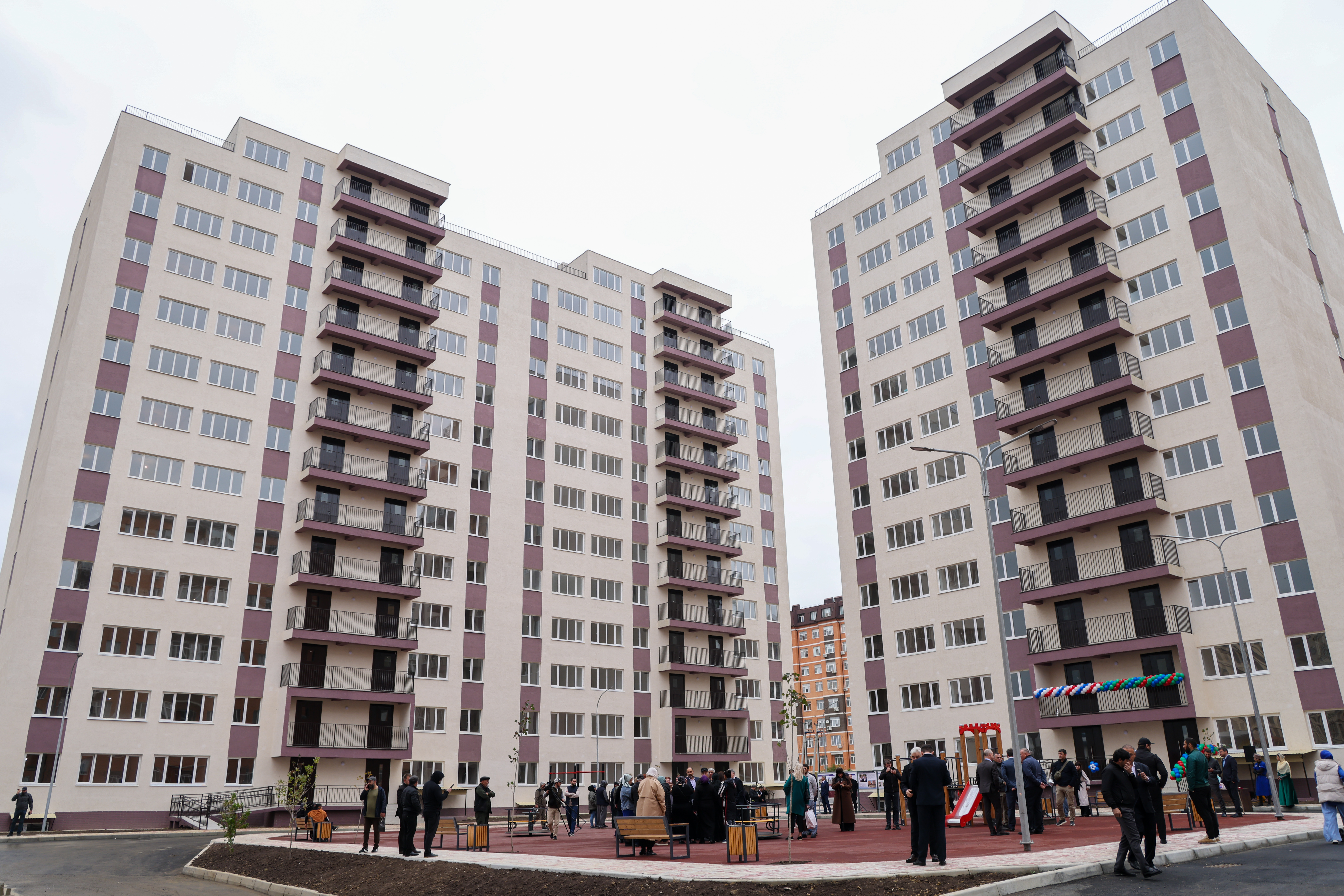 Перед началом церемонии они осмотрели новые многоквартирные дома, построенные для переселенцев, а затем лично вручили ключи новоселам.